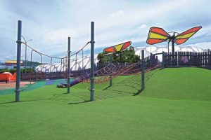 有許多我沒有想像到會出現在公園的遊樂設施,像是跳跳床、或是攀爬的溜滑梯、小朋友的攀岩牆,那天的天氣很好,冬天的微低溫配上暖暖的陽光灑在身上,再加上小朋友玩成瘋魔般的笑聲,建構出美好的畫面印在腦中的底片。